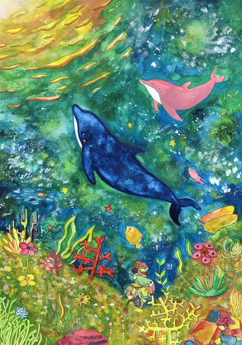 『海中散歩』 #art #artist #絵 #絵画 #景色 #水彩画 #幻想的 #イラスト #芸術 #画 #癒し #画家 #芸術家 #海 #イルカ #夏 #painting #paint #summer #fantastics #illustration #cute #beautiful #like #アート