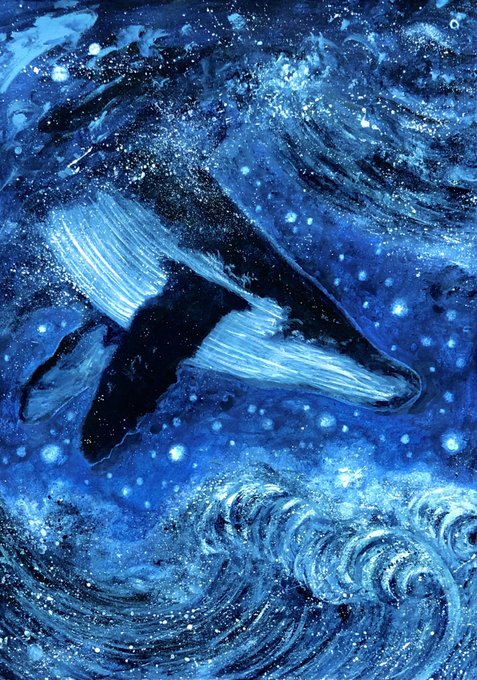 『空を飛ぶ鯨』 #絵 #水彩画 #art #artist #painting #paint #イラスト #イラストレーターさんと繋がりたい #イラストレーター #芸術 #芸術家 #海 #夏 #鯨 #青 #波 #カラー #幻想的 #絵画 #アート #水彩 #綺麗 #美術 #美 #beautiful