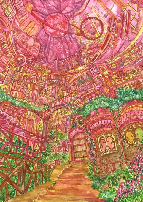 1 16 #絵 #水彩画 #art #artist #painting #paint #イラスト #イラストレーターさんと繋がりたい #イラストレーター #芸術 #芸術家 #カラー #幻想的 #絵画 #アート #水彩 #綺麗 #美術 #美 #beautiful #赤 #街 #ピンク 21/09/14 20:20