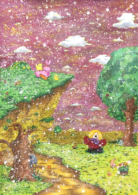 『白昼の夢』 #絵 #芸術 #art #artist #painting #paint #painter #アート #水彩 #水彩画 #イラスト #子供 #お絵かき #お絵描き #子ども #風景 #風景画 #綺麗 #キレイ #雪 #ほのぼの #色 #女の子 #可愛い #かわいい #空 #きれい #うさぎ #動物 #木 #雪 #昼 #昼間 #リス #可愛い #星 #キラキラ
