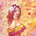 『母の姿』 #art #artwork #母 #絵 #絵画 #花 #水彩画 #水彩 #絵の具 #女性 #color #オレンジ #黄色 #赤 #肌色 #メイク #母親 #アート #beautiful #beauty #mother