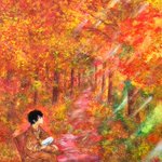 0 2 『秋、この道』 #絵 #絵画 #イラスト #秋 #風景 #赤 #黄色 #森 #木 #水彩画 #水彩 #夕焼け #夕方 #道 #秋 #木の葉 #芸術 21/01/28 23:48