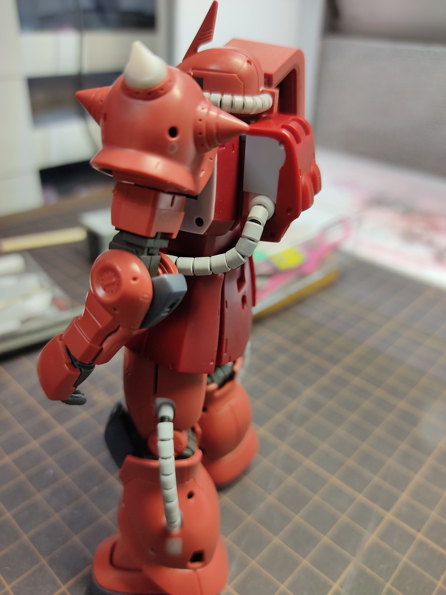 スカートアーマーにできる隙間をプラ板で潰しました。 オリジンザクでは定番の工作みたいです。部分的に削りすぎないように気をつける必要があるし、左右のバランスも取らないといけないしで、くっそ大変でした。でもこれはやってよかったと思う。 #ガンプラ好きと繋がりたい #ガンプラ初心者