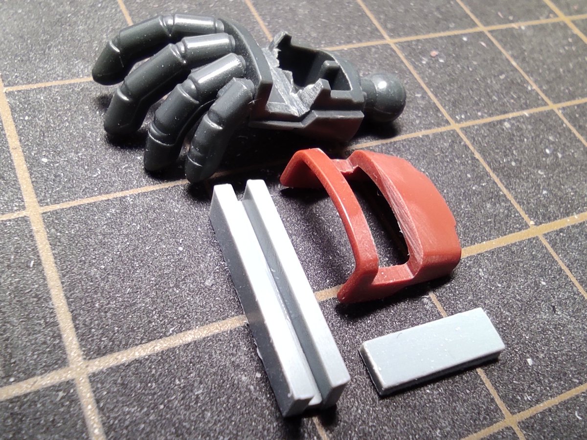 手の装甲の角にラッチ風ディテールをタガネで彫ろうして失敗した為、仕方なく、プラ板をコの字型に加工してはめ込んで整形するとゆー方法をとってみました。とてもめんどくさかったです。 #ガンプラ好きと繋がりたい #ガンプラ初心者