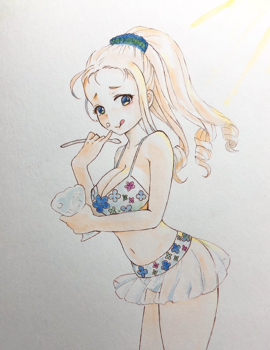 #mow版深夜のお絵描き60分一本勝負 #mow版深夜のお絵描き60分一本勝負_20220207 お題【マリー】(+15分) 「おかわりいただける?」 一番くじの水着です(あれはスカート透けてないけど…)。 いつかお迎えしたいフィギュアです。