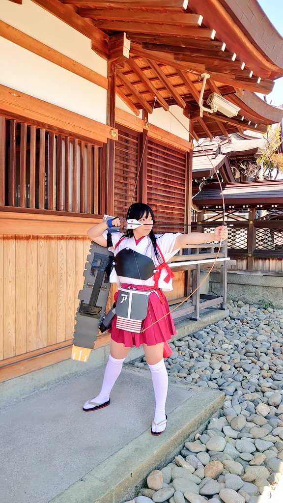 弓の練習をしてる赤城さんかっこいい♪(≧▽≦) そして疲れて寝てしまう赤城さん、かわいい♪(*´ω`*) 赤城コス(@seiryuusyoukyou) #colorplayer #CPあぼしまち #CPあぼしまち0411