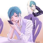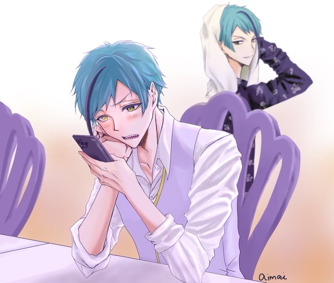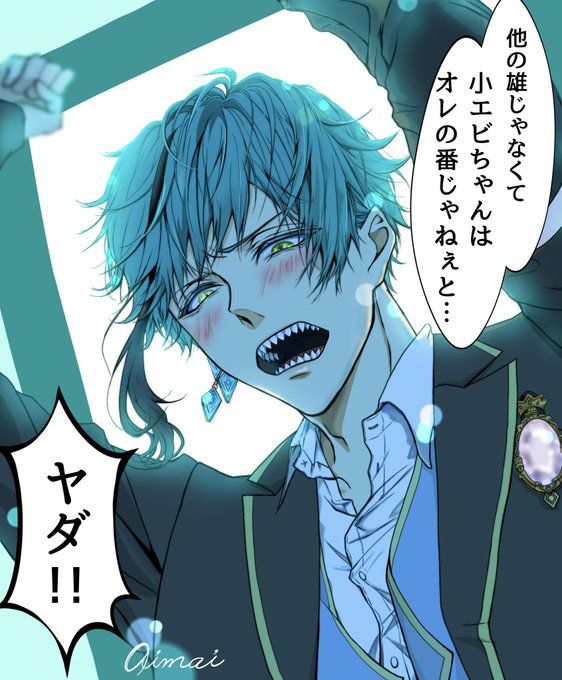 #twstファンアート #ツイステファンアート #twstプラス #フロイド・リーチ ※昨夜のものに手直しをして再掲させて頂きました🙇♀️反応をくださった方、どうもすみません🙇♀️ (🦐←←🦈)② 🐬「…おや、まだLINEを送っていないんですか?」 🦈「〜〜っ、小エビちゃんが喰いつくネタ探してんの‼︎」