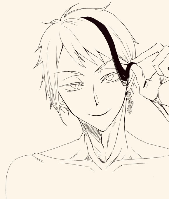 #twstファンアート #ツイステファンアート 🦈同担3人組でお題を決めて描きました( ´ ▽ ` ) お題『メッシュを耳にかけるジェイド』 色も塗ってみましたが、線画の方が好みだったのでこちらで…(o^^o) ジェイド、上半身裸ですが、下は何かしら履いています!オクタパンツですかね、きっと!