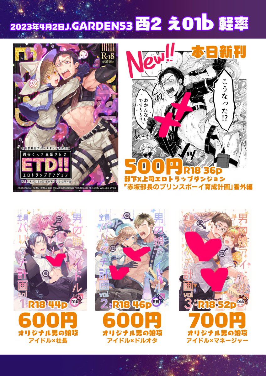 【J庭53】西2え01b軽率 商業BL番外新刊❤既刊全種あります💗💙🧡よろしくおねがいします! 🅿pixivサンプル pixiv.net/artworks/10639… 🐯とらのあなec.toranoana.jp/joshi_r/ec/ite… 🍈フロマージュmelonbooks.co.jp/fromagee/detai… 💙アニメイト animate-onlineshop.jp/pn/pd/2227948/ 📕コミコミスタジオ comicomi-studio.com/goods/detail/1…