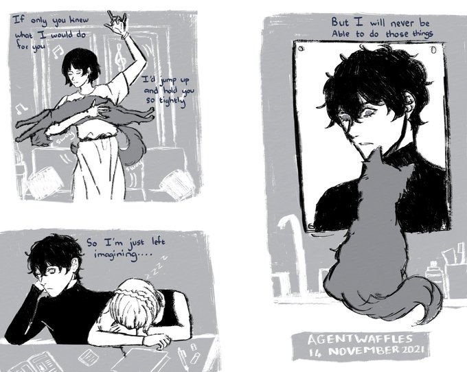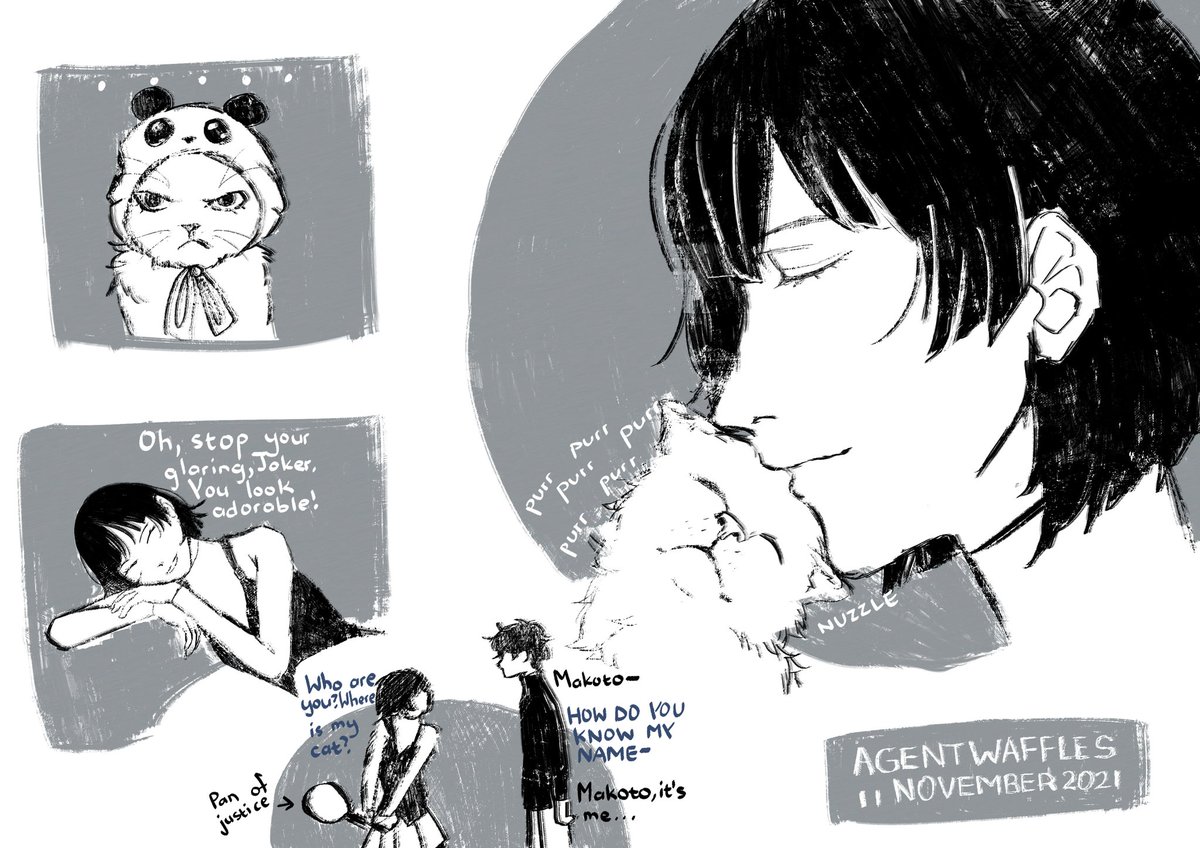 Yes, I'm still thinking about that 'guardian spirit Akira who can take the form of a cat AU', okay 😭. #shumako #persona #persona5 #p5 #MakotoNiijima #renamamiya #akirakurusu #art #fanart #rkgk