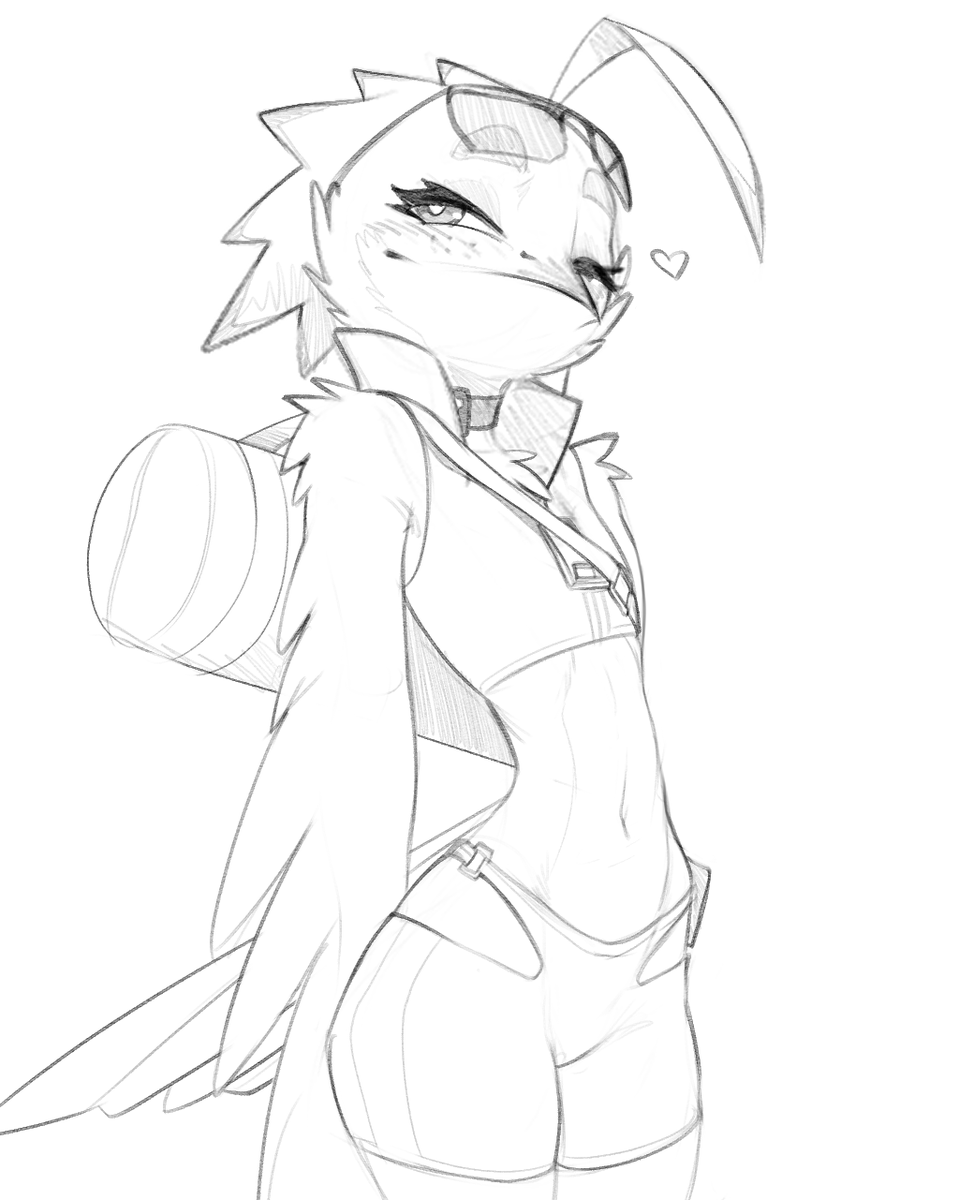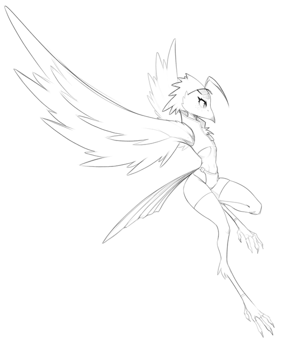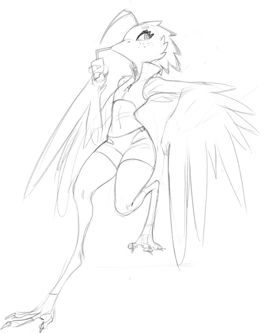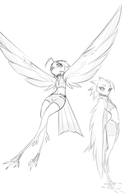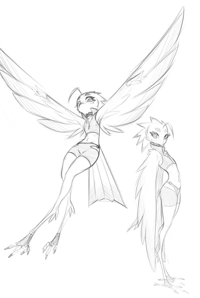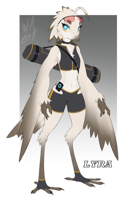 New OC time: Lyra is based on a Potoo bird (also known as ghost bird). She works as a messenger in the same setting/world as the rest of my OCs. She can only make bird noises which makes communication hard, luckily for her the choker has a built-in translator.