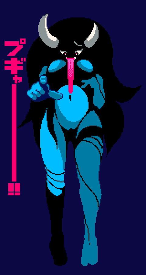 挑発する鬼の女の子 #ドット絵 #鬼娘 #メスガキ pixiv.net/artworks/83337…