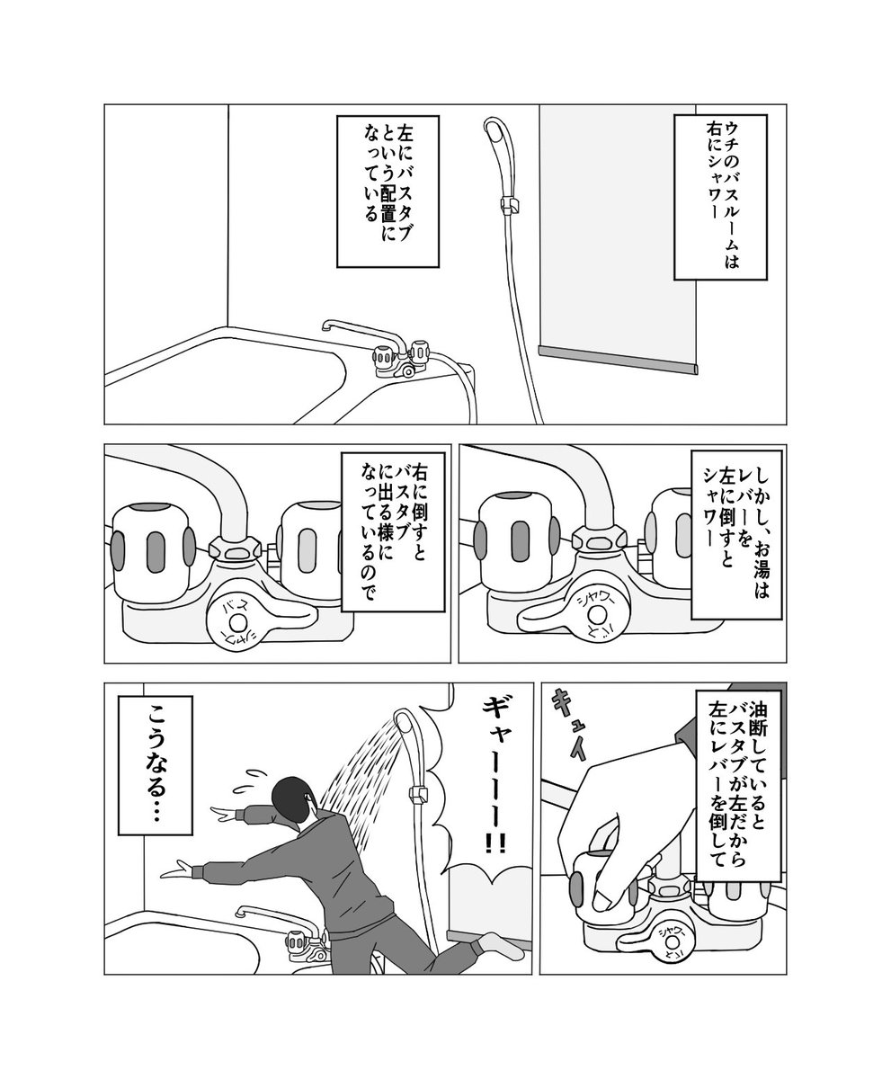 「バスルームの悲劇」 これ、何度もやってます… #漫画が読めるハッシュタグ #エッセイ漫画