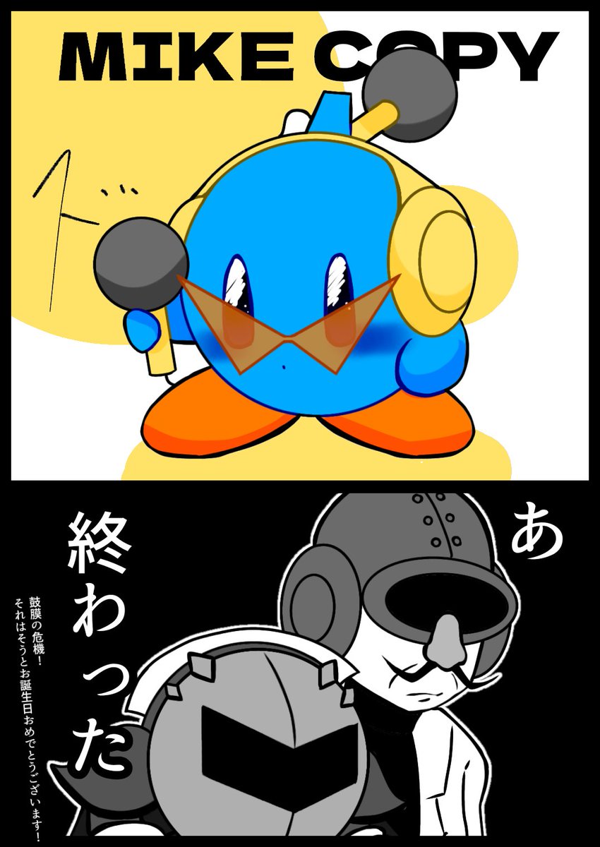 2 6 @husahusano_HIGE 髭泥棒さんお誕生日おめでとうございます! 出会って間もないですが企画にお誘いして下さったりカービィシリーズに触れて下さったり本当にありがたい限りです(土下座) ネタに走ったお祝い絵ですがどうかお納めください(二度目の土下座) 22/04/27 01:41