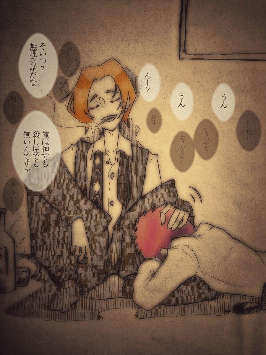 絶賛病み期の殺し屋さんと適当に慰めにきた武器商人 (※過去絵リメイク)