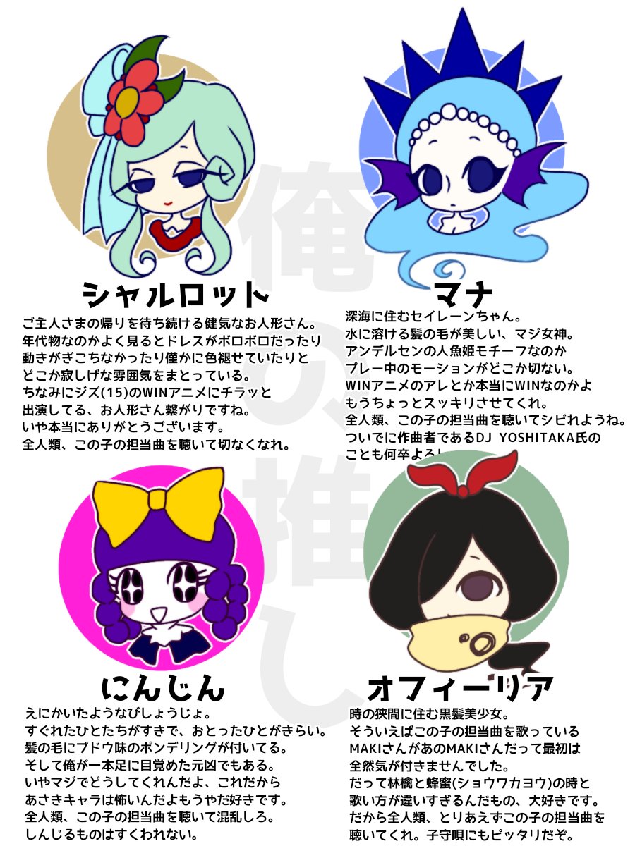 7 15 #リプをもらった番号の色を使って絵を描く 09.愛しのハニー(シャルロット) 22.マジックルーム(マルク) 24.まどろみホイップ(コクリコ) で描かせて頂きました。 20/02/28 13:32