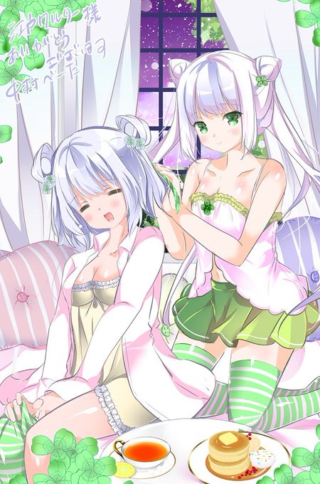 シロツメクサの別バージョンが実装されたので、 ここで以前中村べーた先生(@btanakamura)にskebで描いていただいた、シロツメクサ&クローバーをご覧ください #花騎士