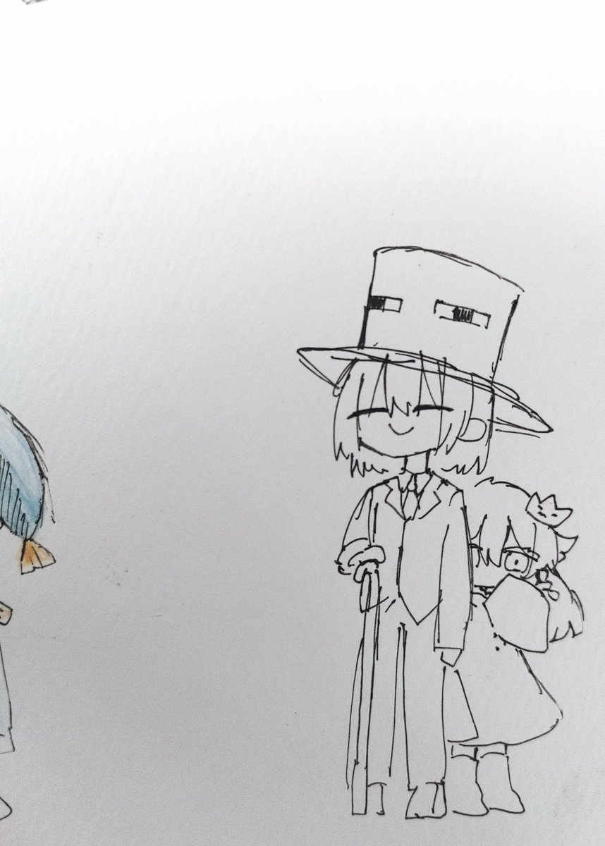 2 104 #ガスト一家の日常 タッチペンで久々に描いたら線ガッタガタになったノーちゃん。猛暑でも暑がらなそうだからネザーにでもいるのかしら、、、 23/01/17 19:57