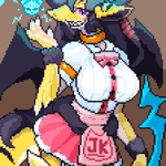 Stella、ルーナの次に好きなキャラ 声優さんの演技がとても良き バチクソマツゲの小型化が難しい! ここを何とか出来ればもう少し小さくできたんだけど… #pixelart #ドット絵 #HelluvaBossStella
