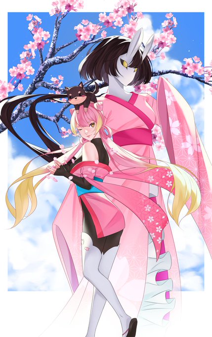 Kumomo, her Persona, and her dog Moca Commission work for @KumomoVT Pink and cherry blossoms are starting to become my favorite drawing themes. Somehow feels very relaxing #kumomochillust