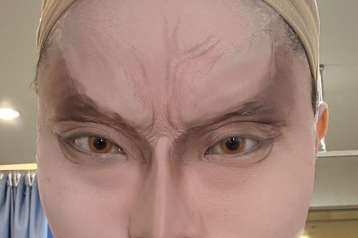 柴大寿のコスプレができ上がるまでのパテメイク👀👃 ベースは大体こんな感じで作って、 パテを綺麗に馴染ませたりメイク色々。 写メってほぼパテと肌の境目見えないくらいになれば最高。 瞳孔小さくして影強めにしたら良い感じ。