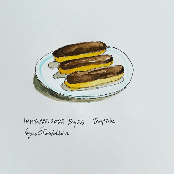 Inktober challenge Day 25 TEMPTING #inktober2022 #inktober2022tempting #tempting #eclairs #cake #wicklowart #fergusoconchobhair #penandwash