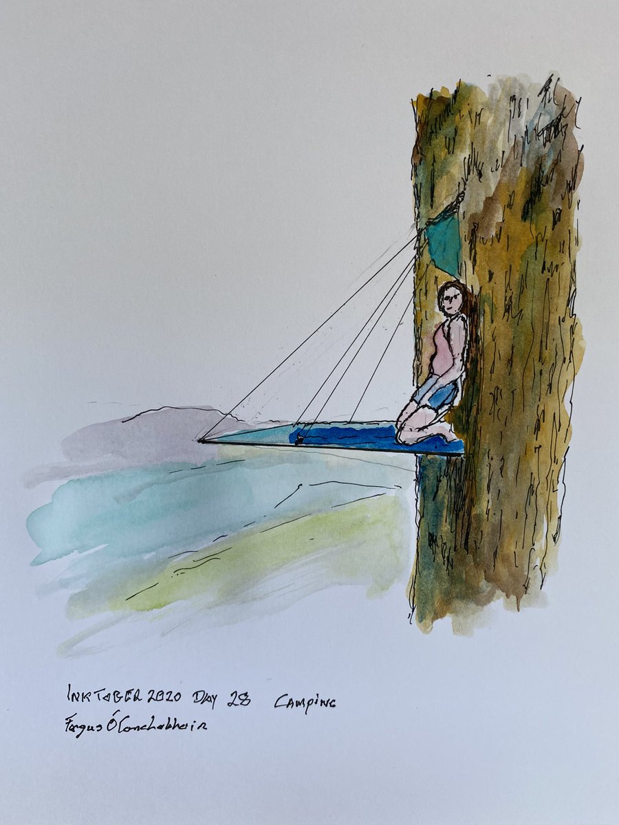 Day 28 Inktober challenge Camping. I think cliff camping is just a little frightening. Scary even thinking about it. #inktober2022 #inktober2022camping #camping #fergusoconchobhair #penandwash