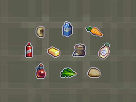 some food items i made for @projectslr #terraria #pixelart #ドット絵