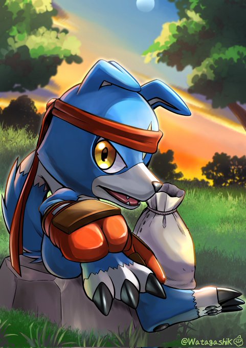 あたりでいちばんたかいビルにとりつくと、ルガモンは駆けあがった。 垂直の壁を。 ツメをくいこませて疾走する。 #Digimon #DIGIMONSEEKERS #FANART
