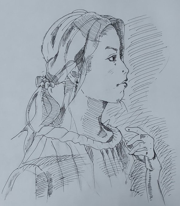 穏やかそうな女性を描いた。 #クロッキー #ペン画 #アナログイラスト #芸術同盟 #アナログ一発描き