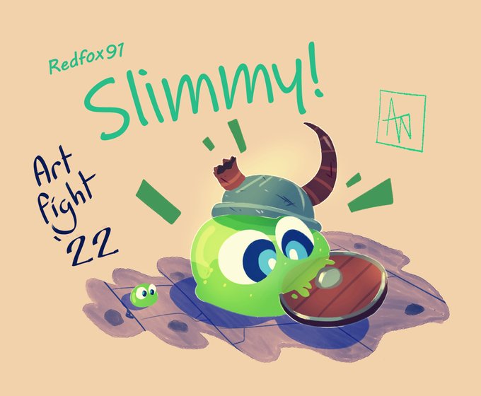 #Artfight2022 attack on artfight.net/~redfox91 Slimmy!! just a lil slime chewing on a cool circle he found