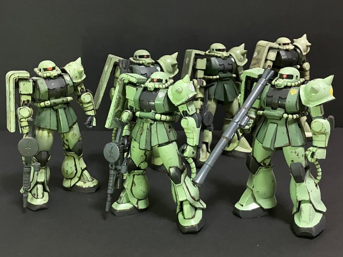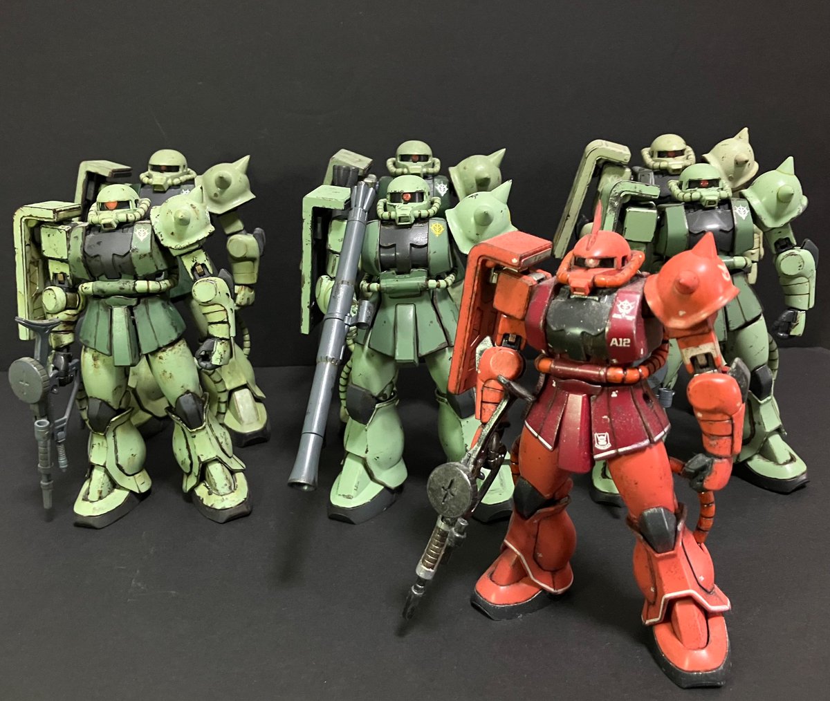 #今年作ったプラモ晒そうぜ ⑩ザクがザクザク… ここだけでなく先にも後にもツイートした物も含めて 新旧世代、スケールもバラバラにウチにずっと保管していた物からジャンク品でしたり、頂き物でしたり… 今年も沢山のザクさん達に出合わせて頂きました 関わって下さった皆様の真心に感謝\(TT)/