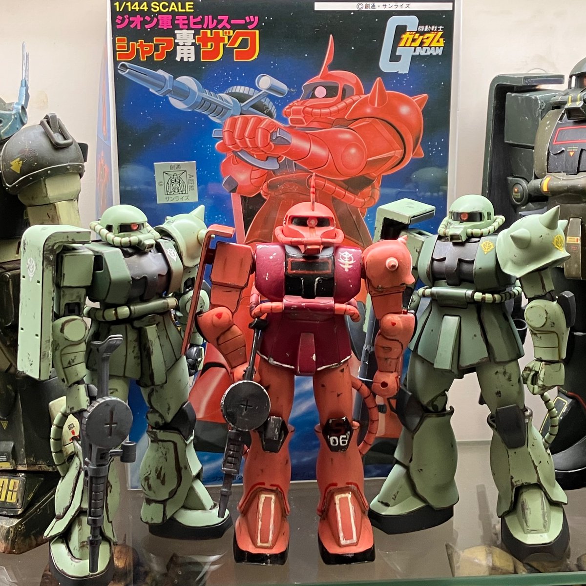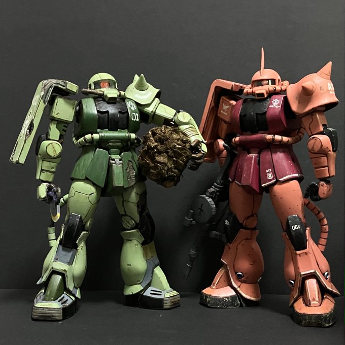 #今年作ったプラモ晒そうぜ ⑤ちょっと日にちが過ぎてしまいましたけど… ソロモン攻略戦・チェンバロ作戦絡みで新旧キットを関係無く触ってた時期も有りました この写真のザクさんに関しては初版時の物を通算4回目のリメイクでしたもんね… いくらMGでも関節がガタガタでしたwww