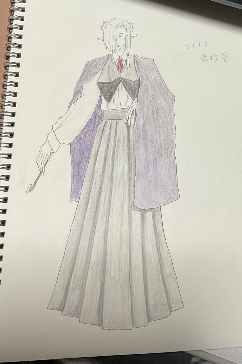 タナトスーーー これが普段着 デジタルのは戦闘着だから見下してる構図 #絵描きさんと繋がりたい #絵柄が好みっていう人にフォローされたい