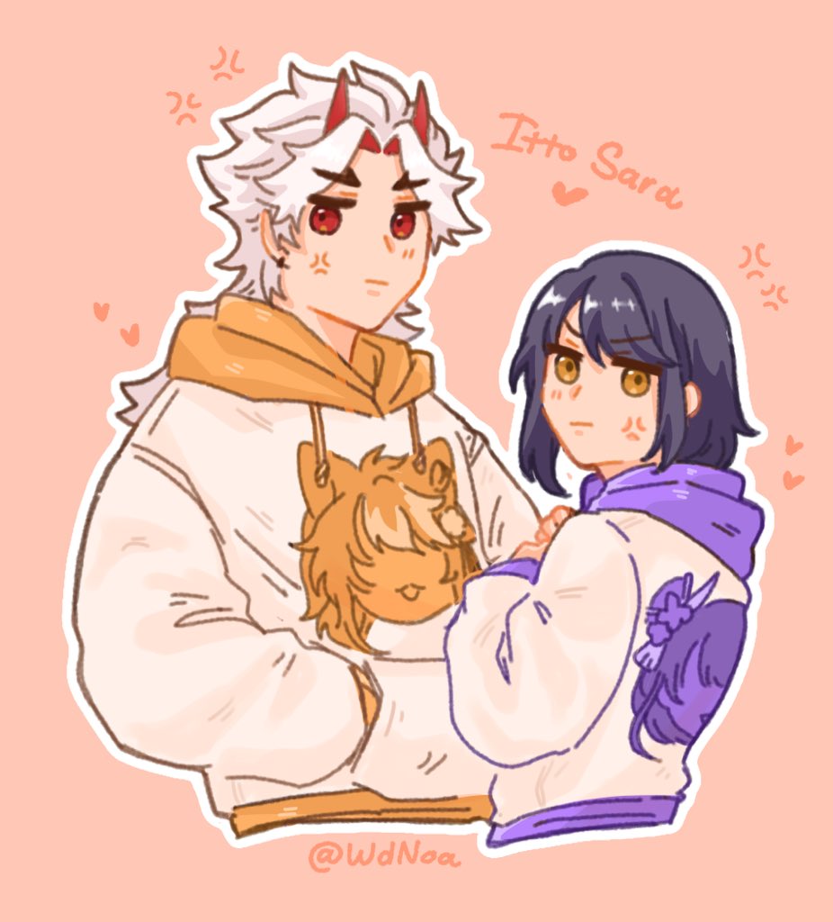 Itto but small ver 🥺🤲💖 and Sara is a babysitter lol 🌸💕 #GenshinImpact #aratakiitto #KujouSara #ittosara #cute