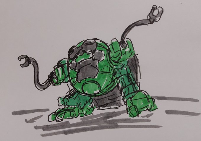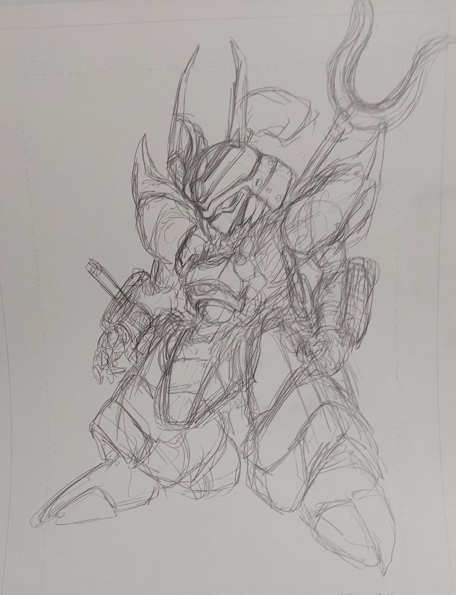 #イラスト #30MM 今日の筆ペンアタック✨ エグザリオン・・・なんか顔が・・・違うなぁ~~肩も・・・・