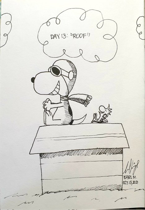 Day 13: "Roof" Our boy Snoopy being the best airplane pilot the world's ever seen 😊🐶 I hope ya'll like it!✨ #inktober #inktober2021 #snoopy #roof #artwork #artistsontwitter