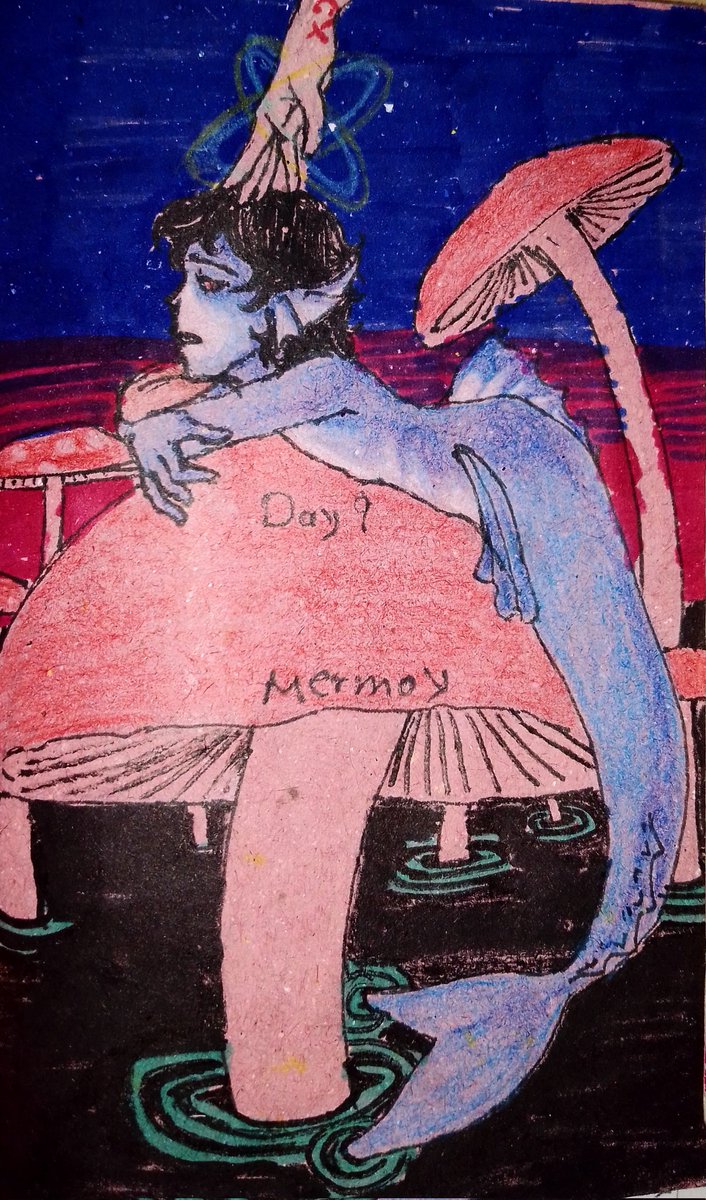 Mermay Day9: mushroom I couldn't think of anyone else, George is the perfect one for this day, with a visit from a certain god #mermay #mermay2022 #georgenotfoundfanart #GEORGENOTFOUND #dreamsmp