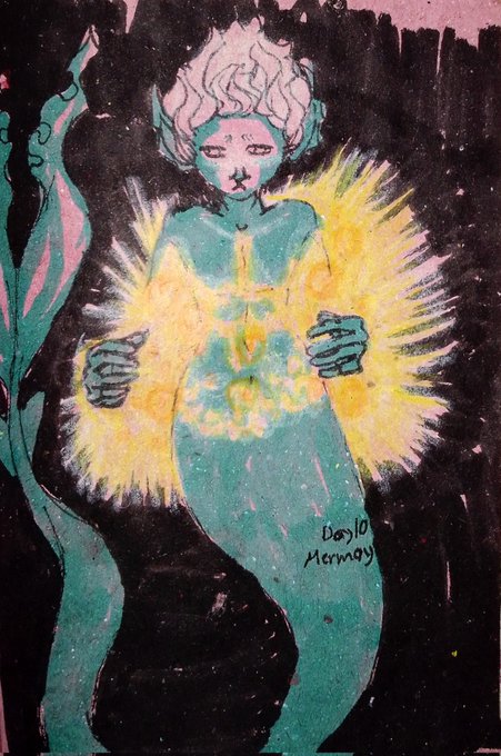 Mermay day10: glowing I want drawn England, 'cause he's magic #mermay #mermay2022 #Mermaid #CountryHumansuk