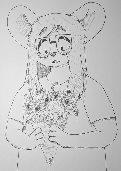 "... These are for me?..." Inktober day 6: "bouquet" #inktober #inktober2022 #inktober2022day6 #furryart