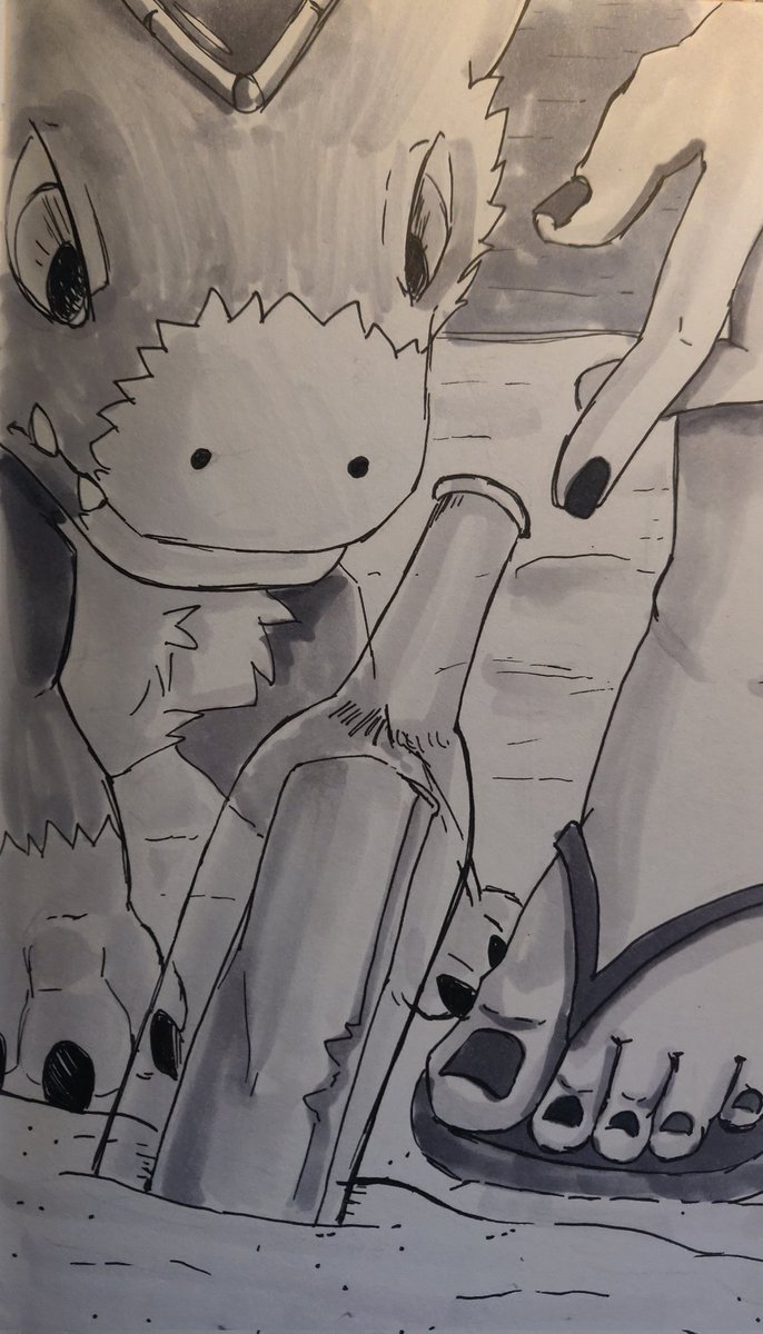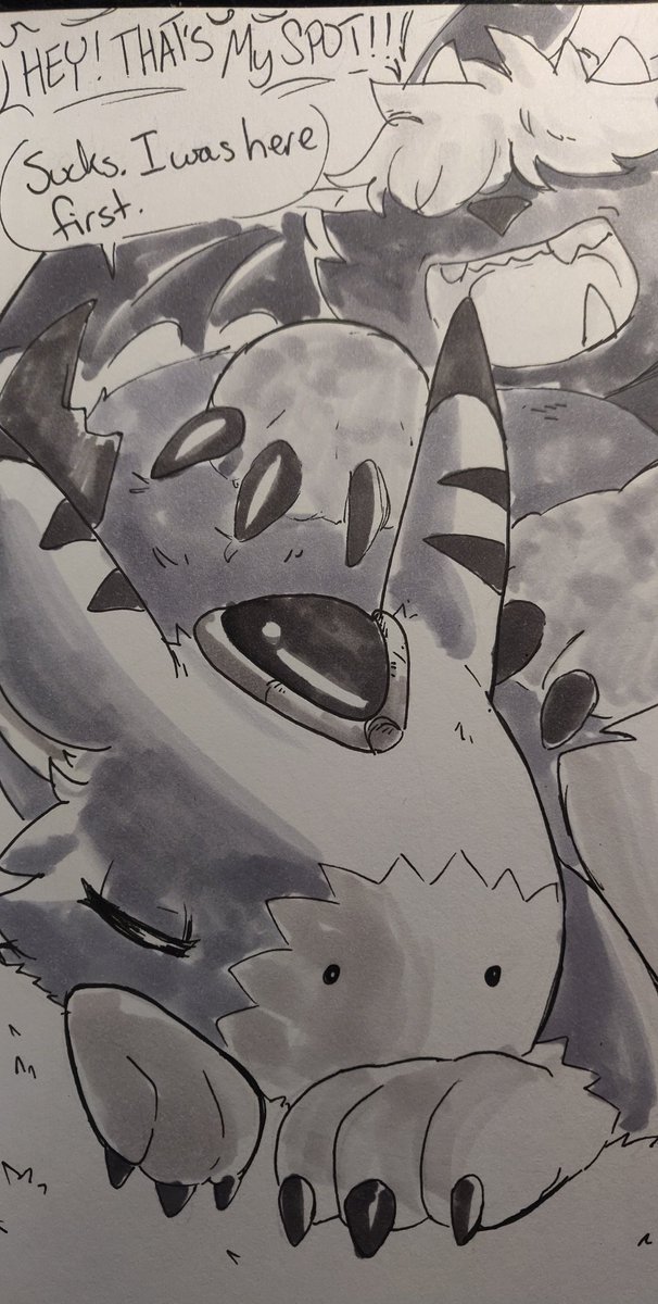 Day 27 - Unaware Did a quick one today! Pandoras sneaking up on an unaware dorumon who has once again took her spot in the sun #dorumon #inktober #digidreamtober