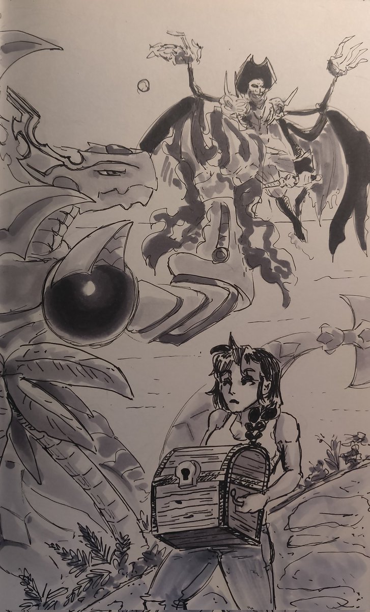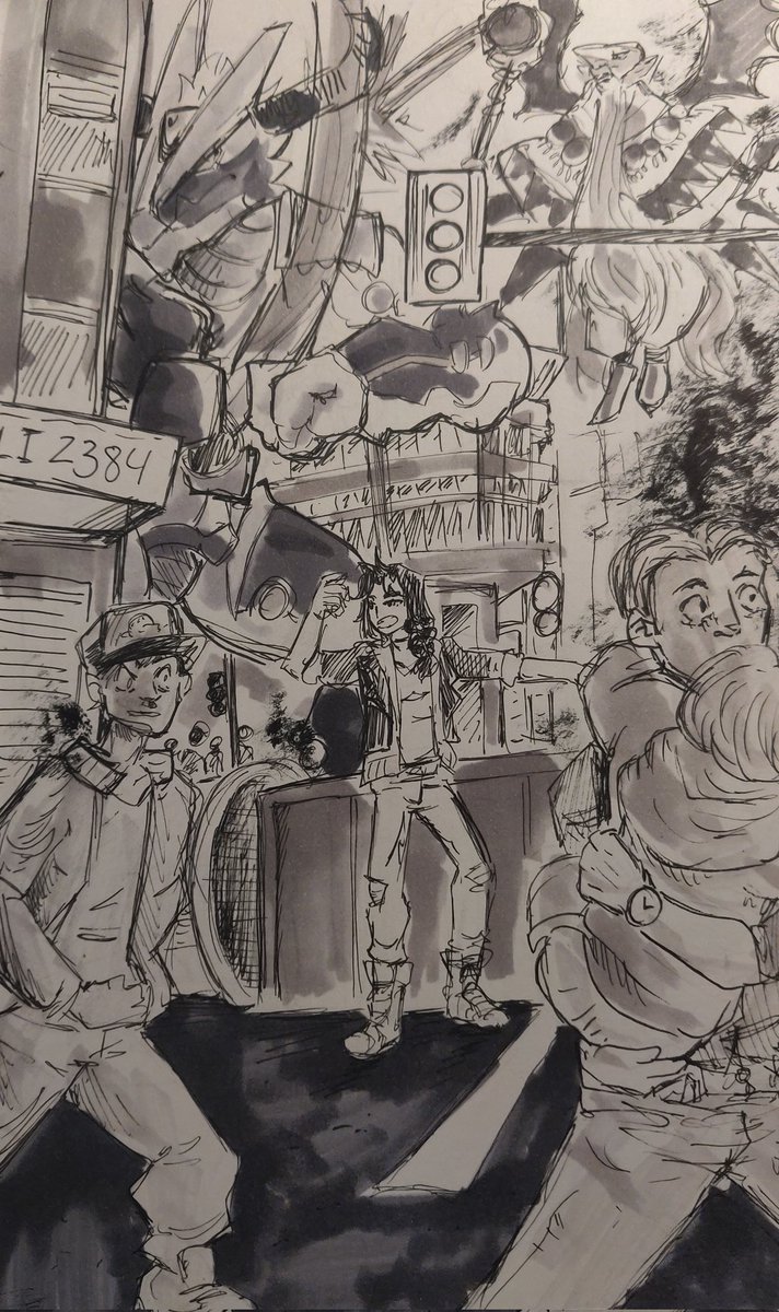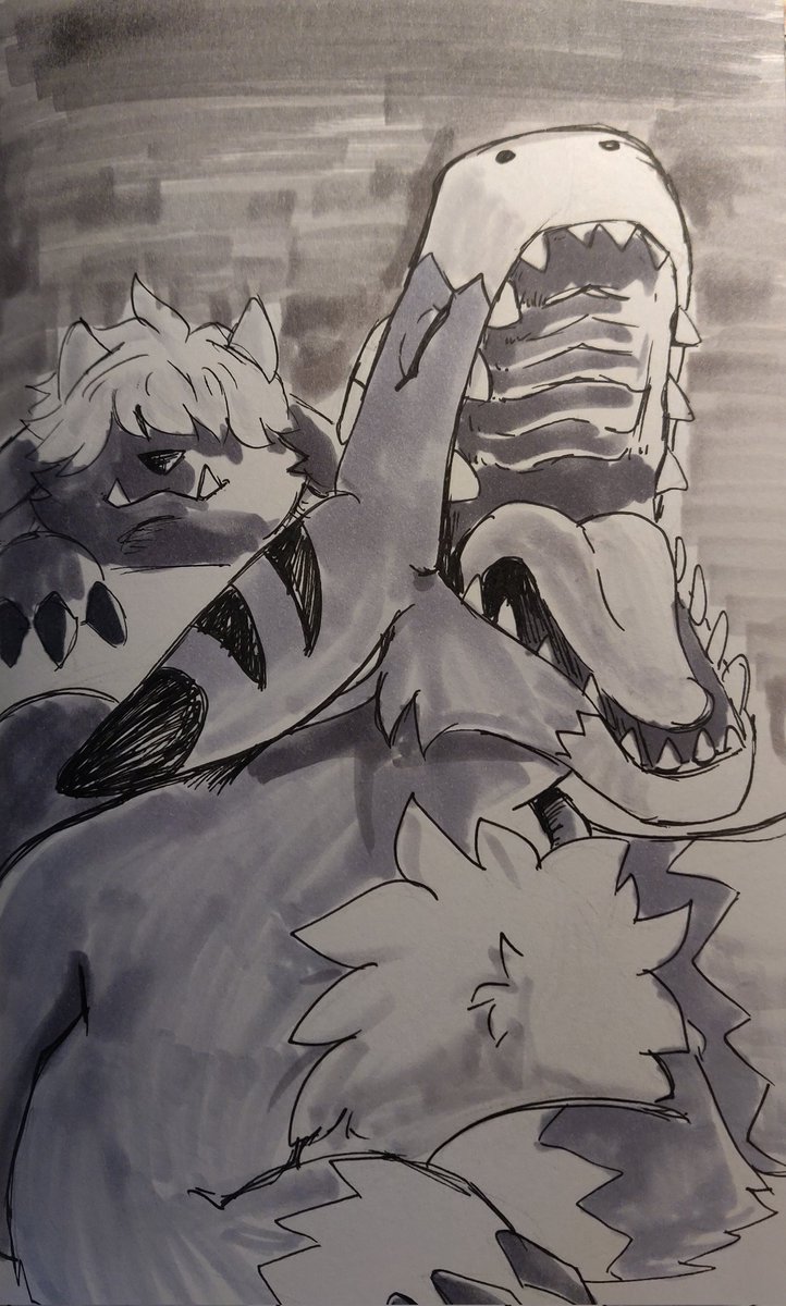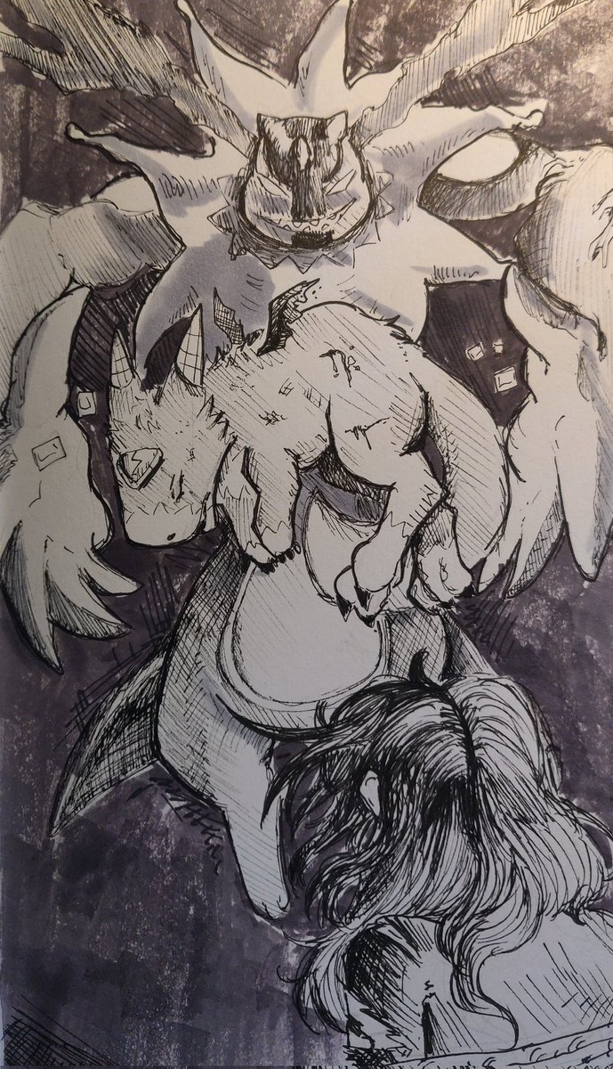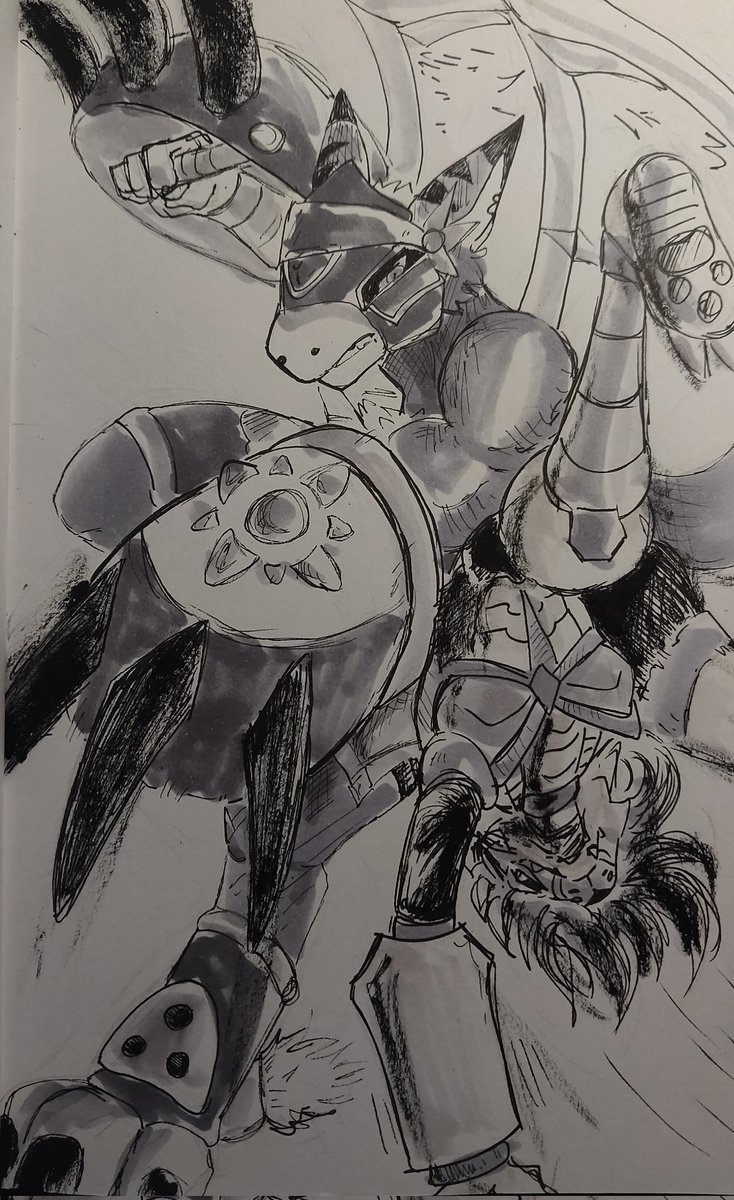 Day 11 - Fortune A Boltboutamon pillaged an entire digital town for their fortune. Alex and Dorugoramon steal it back! --- #digimon #dorugoramon #bandai #boltboutamon #inktober #digidreamtober