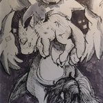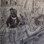 Day 26 - Distortion Went abstract with this one! Alex often feels distortion between her and Kuhoshimon the lines between them are frequently blurred as they're digivolved together --- Whoops forgot to post this one! #inktober #fandigimon #digidreamtober