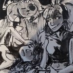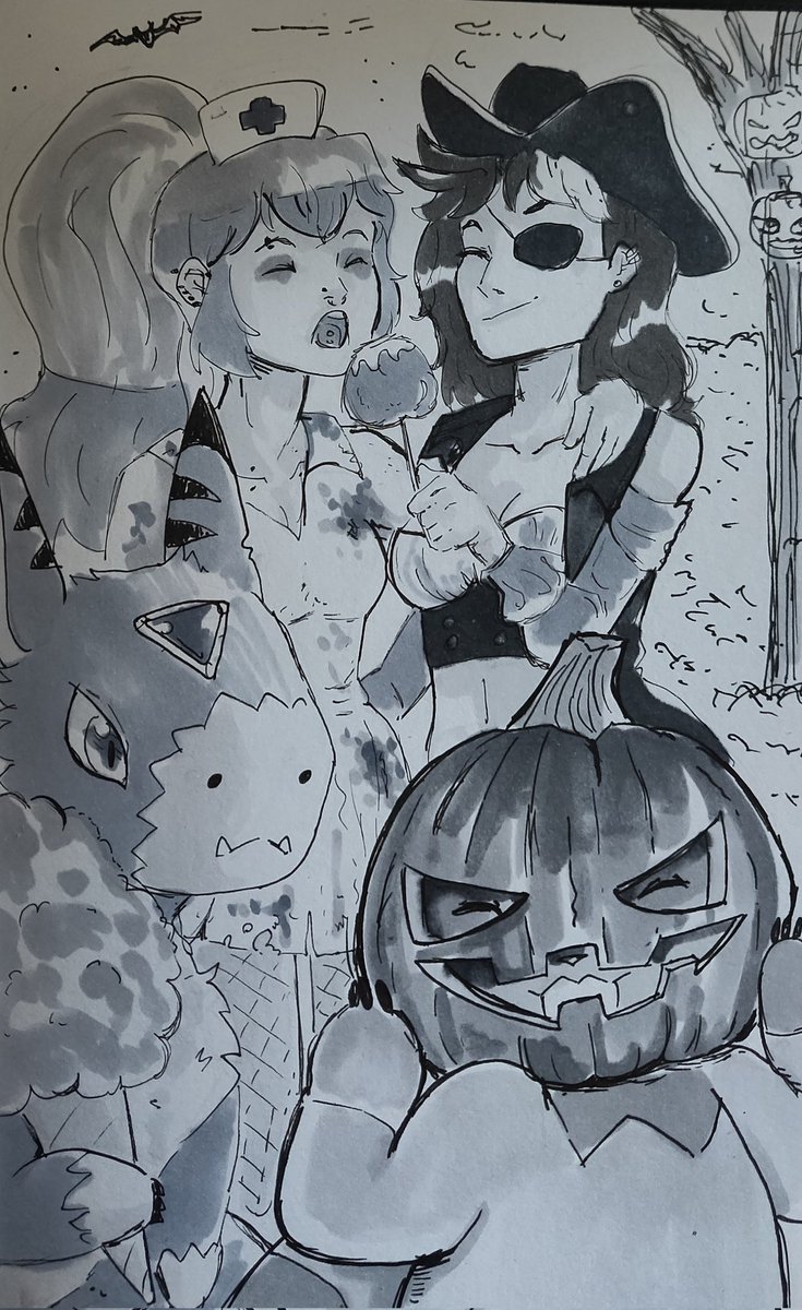 Day 10 - Relationship Alex really loves cooking a family dinner for her girlfriend and their partners <3 #RelationshipGoals --- Lou&Spin | @InhaleChalk --- #digimon #dorumon #lopmon #bandai #inktober #digidreamtober