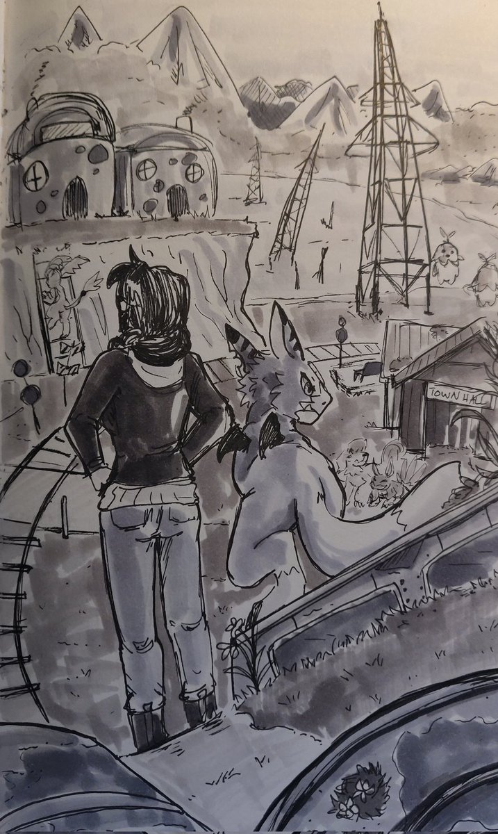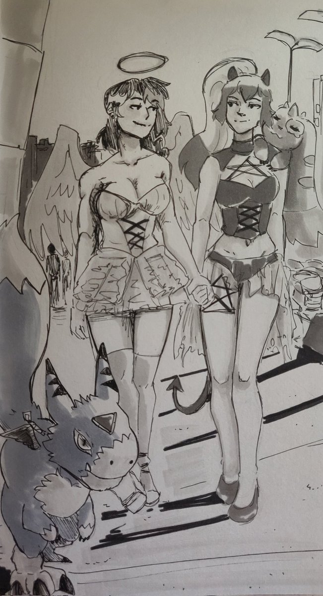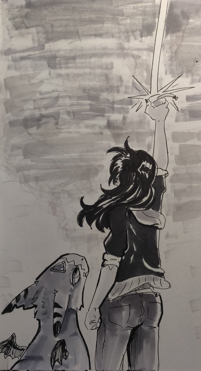 Day 19 - Sympathy Alex sometimes feels lost in her place in the world. The only time she felt a sense of purpose was with digimon. Luckily she has Lou to help ground her <3 --- Lou @InhaleChalk --- #digidreamtober #inktober #ocs