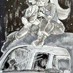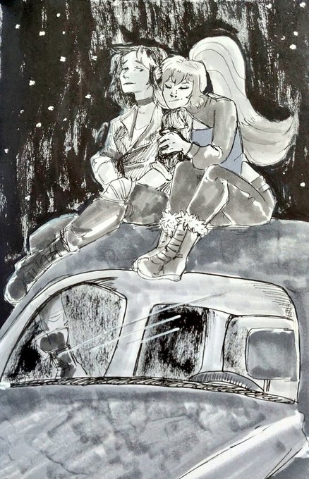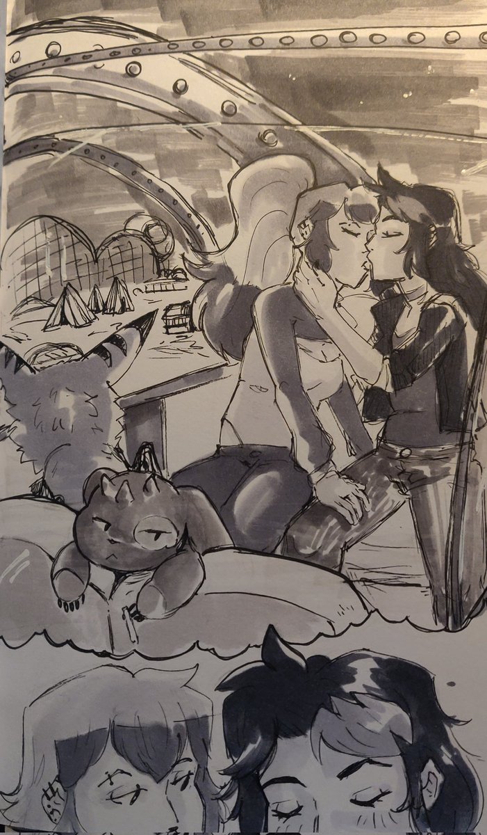 Day 22 - Reminiscent 🎡😘 Alex and Lou reminisce about their first kiss. Alex thinks when they almost kissed on the ferris wheel should count since it would've happened if she didn't disappear --- Lou @InhaleChalk --- #digimon #inktober #digidreamtober
