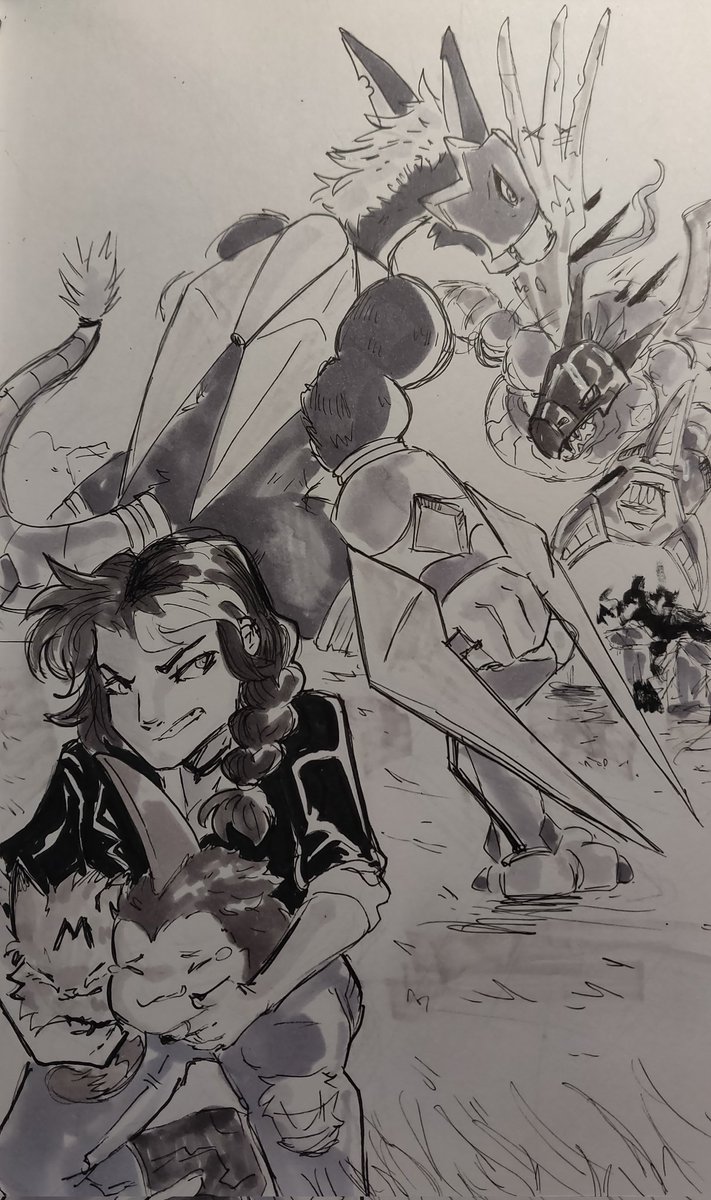 Day 20 - Leader Being a good leader means doing everything you can to protect your team. Alex does her best to be a good leader. --- DoruNobimon is the ultimate version of a courage line I designed for Dorumon --- #digimon #fandigimon #dorumon #inktober #digidreamtober