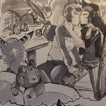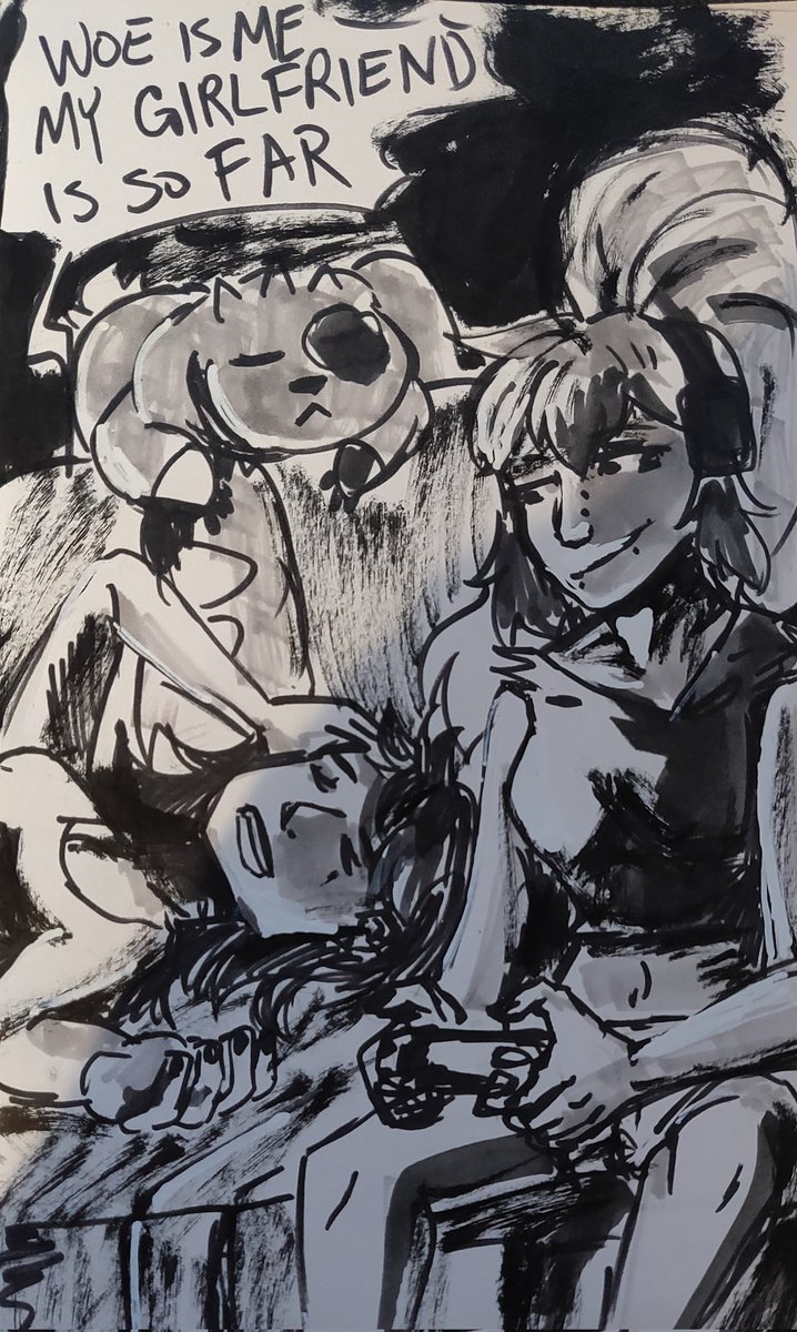Day 31 - Tragedy Late night gaming with Lou (@InhaleChalk) leaves Alex longing for her girlfriend to be closer v.v #inktober #digimon #digidreamtober