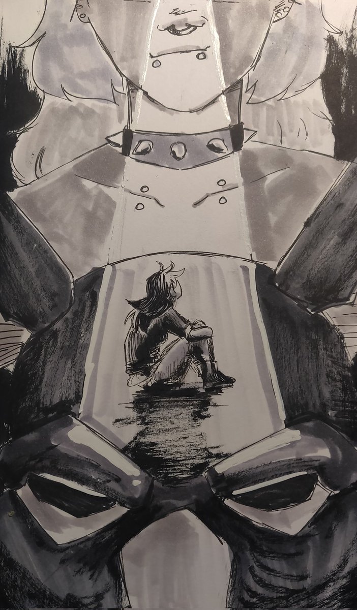 Day - 30 Isolation When Alex feels lost and isolated in Kuhoshimon's mind, the thought of Lou always pulls her back out! --- Lou @InhaleChalk --- #fandigimon #inktober #digidreamtober