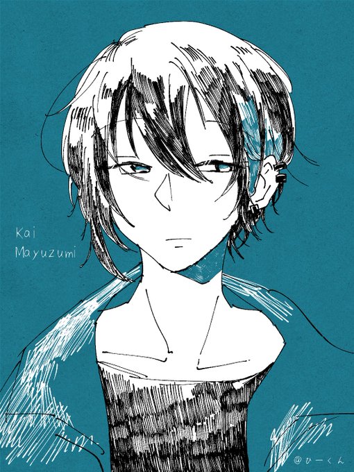 配信待ちをしながら描いたラクガキ 黛君は色んな絵柄で描いてみたくなりますね #灰画